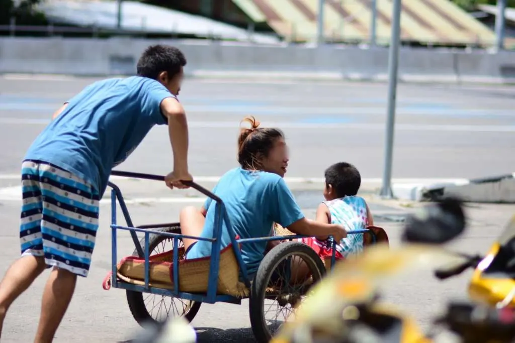 หนุ่มเข็นลูกเมียไปตามทาง อยู่ๆเหมือนฟ้ามาโปรด