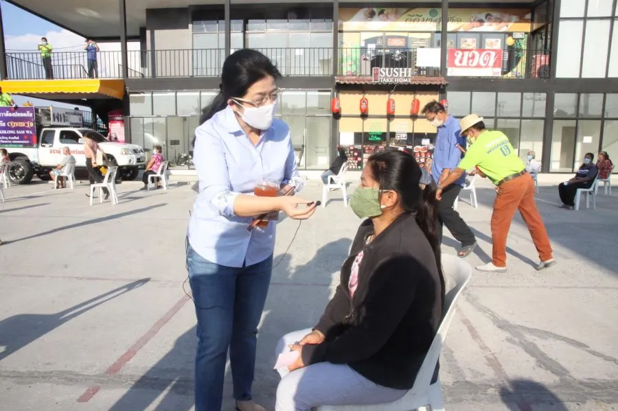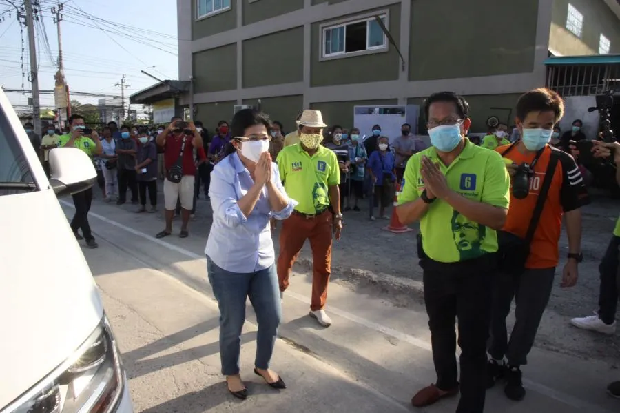 วันที่19 เมษายน ที่ลานหน้าตลาดนายใหญ่ ถนนเลียบคลองสอง เขตคลองสามวา คุณหญิงสุดารัตน์ เกยุราพันธ์ุ ประธานคณะกรรมการยุทธศาสตร์ พรรคเพื่อไทย นายจิรายุ ห่วงทรัพย์ ส.ส.เขตคลองสามวา พรรคเพื่อไทย ทำการแจกข้าวสารอาหารแห้ง รวมทั้งหน้ากากอนามัย เจลล้างมือ และเฟซชิลด์ นำใส่ถุงมอบแก่ประชาชนในพื้นที่ซึ่งได้รับความเดือดร้อนจากการแพร่ระบาดของโควิด-19 โดยมีเจ้าหน้าที่อสม.ร่วมดูแลให้คำแนะนำประชาชน