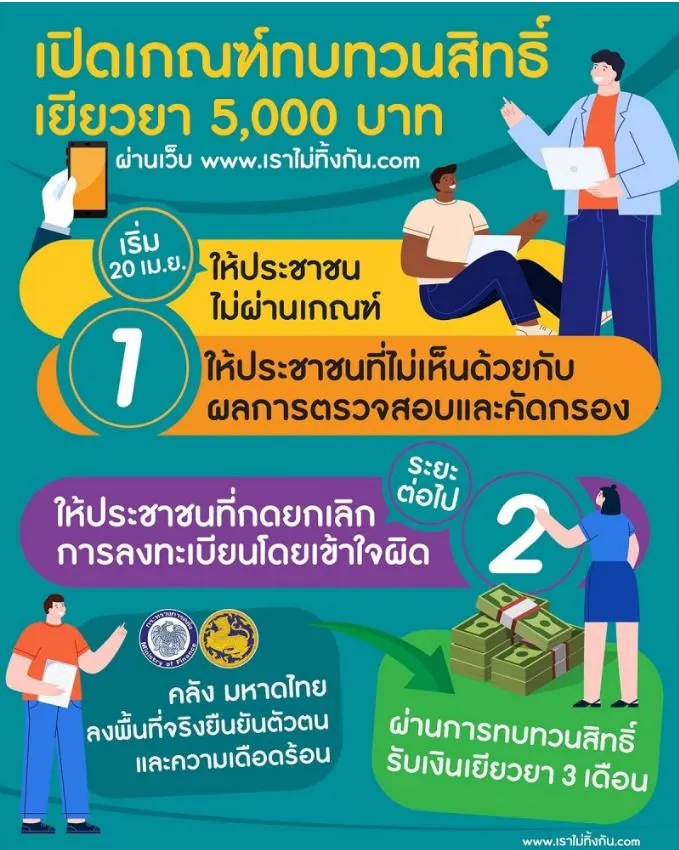 ยิ่งไปกว่านั้น ผู้ผ่านการ ยื่นอุทธรณ์เราไม่ทิ้งกัน จะยังได้รับเงินช่วยเหลือ ครบทั้ง 3 เดือน เนื่องจาก การให้เงินเยียวยาจะใช้วันลงทะเบียนในการเริ่มนับสิทธิ์ ดังนั้น การทบทวนสิทธิ์ไม่กำหนดระยะเวลาอาจต้องใช้เวลาพิจาณา และหากทราบผลการพิจารณาในเดือนพฤษภาคม ผู้ผ่านการทบทวนสิทธิ์จะได้รับเงินเยียวยาครั้งแรก 10,000 บาท เพราะได้รวมเงินเยียวยา 5,000 บาท ของเดือนเมษายนด้วย