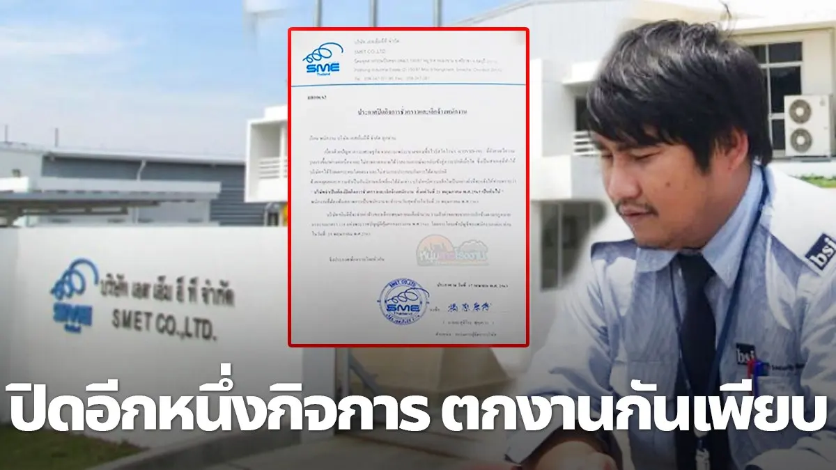 วันที่ 19 เมษายน ผู้สื่อข่าวรายงานว่า บริษัท เอสเอ็มอีที จำกัด ซึ่งเป็นโรงงานผลิตชิ้นส่วน อีเล็กทรอนิกส์ ใน มือถือ คอมพิวเตอร์ นิคมอุตสาหกรรมปิ่นทอง (เฟส2) อำเภอศรีราชา จังหวัดชลบุรี ได้ออกประกาศแจ้งเรื่อง ประกาศปิดกิจการชั่วคราวและเลิกจ้างพนักงานโดยมีเนื้อหาดังต่อไปนี้