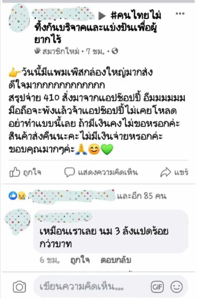 จากกรณีที่มีคนใจบุญโพสต์แจกเงินและสิ่งของให้กับผู้ที่กำลังตกงาน เดือดร้อน และได้รับผลกระทบจากสถานการณ์วิกฤติในครั้งนี้ โดยให้ชาวโซเชียลลงชื่อและบัญชีไว้ที่ใต้คอมเม้นท์ ซึ่งเมื่อผู้ใจบุญคนอื่นๆได้โพสต์ออกไป บรรดาคนที่เดือดร้อนต่างก็พากันมาคอมเม้นท์ชื่อและนามสกุล พร้อมเลขบัญชีไว้ที่คอมเม้นท์ จึงทำให้เป็นช่องโหว่ที่มิจฉาชีพสามารถเข้าถึงได้ง่าย