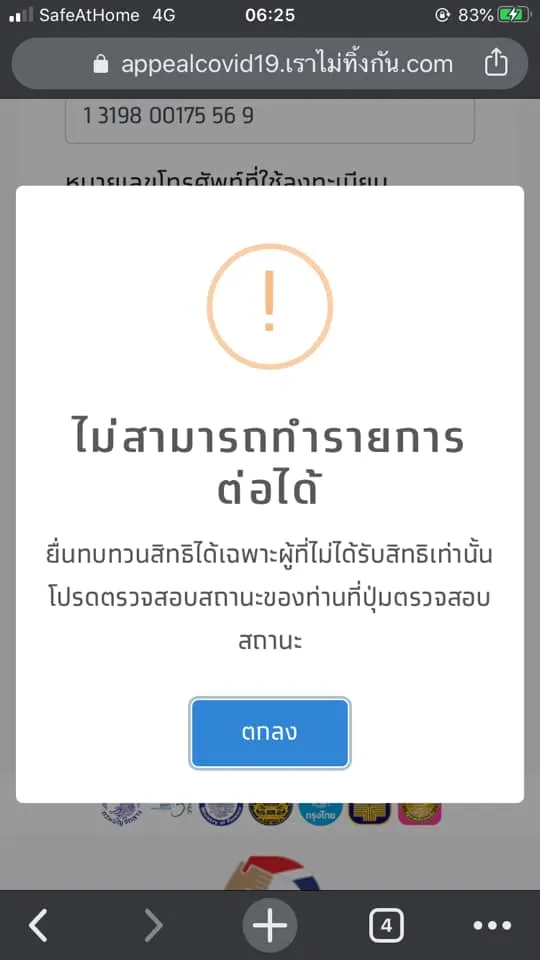 แต่พอกดปุ่ม "ยืนทบทวนสิทธิ" ก็ไม่สามารถทำรายการต่อได้