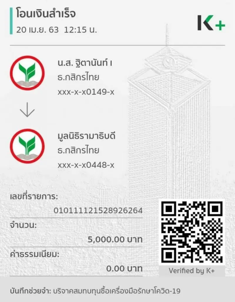 ผู้สื่อข่าวรายงานว่า หลังจากที่นายวิชญะรับเงินคืนไปแล้วได้นำเงินใส่ซองจำนวน 5000 บาท มอบให้กับ น ส ฐิตานันท์ ซึ่งน.ส.ฐิตานันท์ไม่ปฏิเสธที่จะรับ แต่ได้นำเงินทั้งหมดฝากเข้าบัญชีของมูลนิธิรามาธิบดี เพื่อสมทบทุนซื้อเครื่องมือรักษา CD 19 ทันที