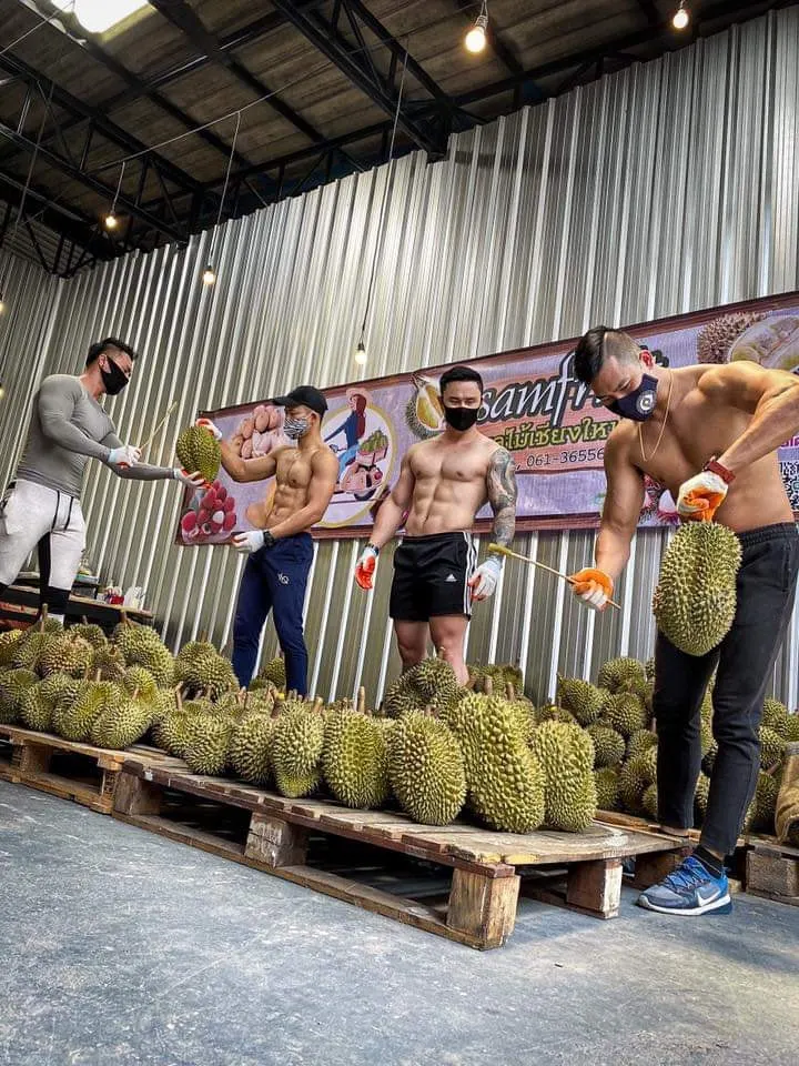 พลิกวิกฤตโควิด-19 หนุ่มๆปิดฟิตเนสขายทุเรียน เห็นแล้วอยากกินทั้งทุเรียน ทั้งคนขายเลยค่ะ