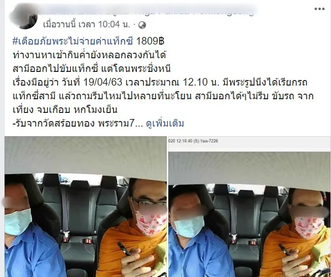 แท๊กซี่โพสต์เตือนภัย!! พระไม่จ่ายค่าแท็กซี ชาวเน็ตจับผิดพระอะไรไม่โกนคิ้ว