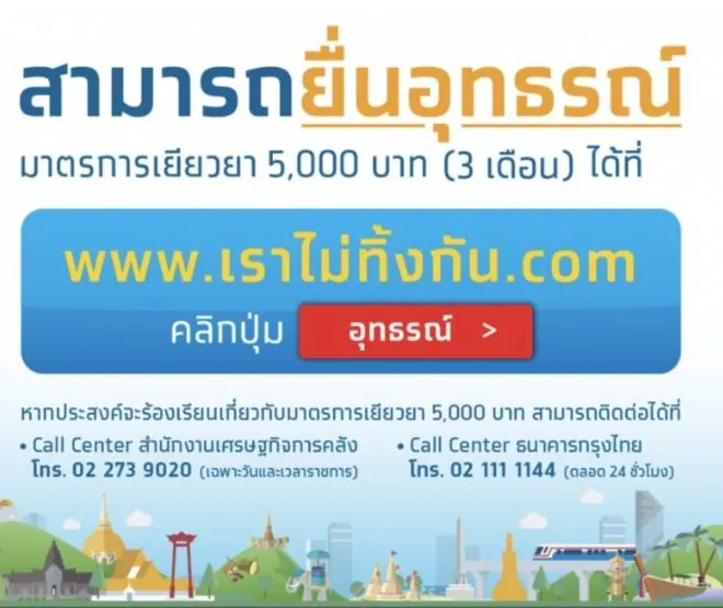 20 เมษายน 63 เวลา06.00 น. เว็บไซต์เราไม่ทิ้งกันเปิดให้ลงทะเบียนกรอกข้อมูลแล้ว เฉพาะผู้ที่ไม่ได้รับสิทธิ สามารถกรอกข้อมูลหมายเลขบัตรประจำตัวประชาชน 13 หลัก หมายเลขโทรศัพท์ที่ใช้ลงทะเบียน และวัน/เดือน/ปีเกิด เพื่อยื่นคำร้องที่นี่