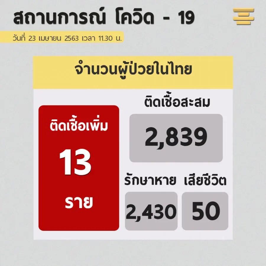 เสียชีวิตเพิ่ม 1 ราย รวมเป็น 50 ราย หญิงไทย อายุ 78 ปี โรคประจำตัว หลอดเลือดสมอง