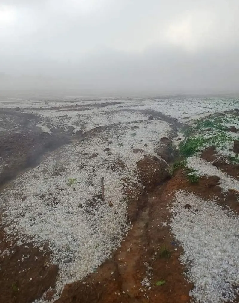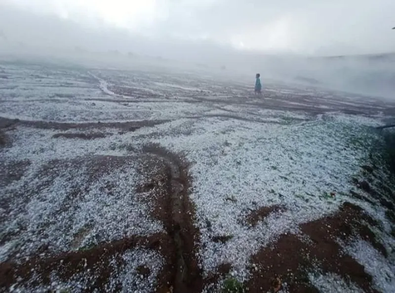 ลูกเห็บตกทั่วภูทับเบิก นานเกือบชั่วโมง ภาพทิวเขาที่ขาวโพลนเหมือนหิมะตก
