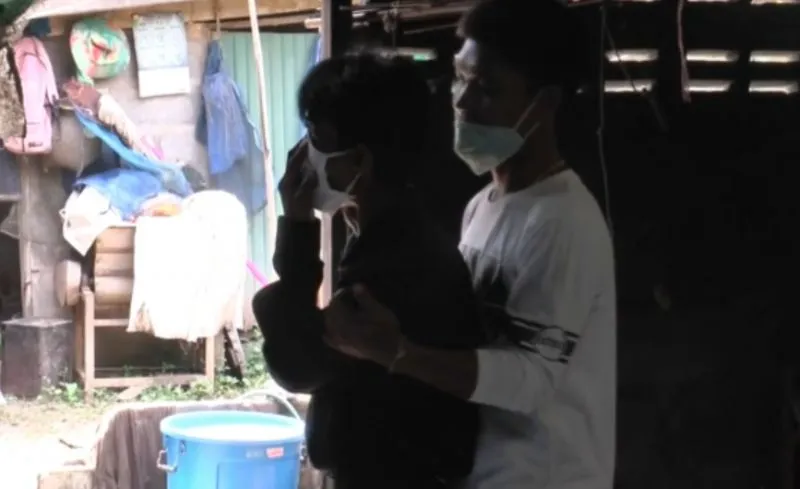 ขณะจะนำร่างออกบ้านนายนิวัฒน์ ซ้ายซา อายุ 59 ปี ผู้เป็นพ่อไม่สามารถทนเห็นภาพนำ ลูกชายออกไปเผาได้ จึงเดินไปยืนร้องไห้อยู่หลังบ้าน ญาติต้องคอยประคองตลอดเวลา เพราะนายนิวัฒน์ป่วยด้วยโรคลิ้นหัวใจรั่วอยู่ก่อนแล้ว ส่วนนางป่าน ซ้ายซา อายุ 56 ปี ผู้เป็นแม่นั่งรออยู่บริเวณหน้าบ้าน แต่พอทหารหามโลงลูกชายออกมาเท่านั้น ก็ปล่อยโฮร่ำไห้ทันที พร้อมกับพูดขึ้นว่า ไปสู่สุคตินะลูก จากนั้นก็ยกโลงใส่รถปิกอัพไปยังเมรุ โดยมีทีมแพทย์ พยาบาล โรงพยาบาลสมเด็จพระยุพราชฯ คอยตรวจวัดอุณหภูมิร่างกาย และแจกแอลกอฮอล์ล้างมือ ก่อนจะเข้าไปภายในบริเวณศาลาอเนประสงค์
