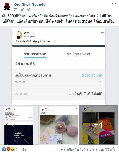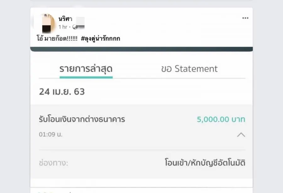 สาวโพสอวดได้เงิน 5,000 ทั้งๆที่มีเงินมีทองมากมาย อยู่สบาย ไม่ได้ลำบาก