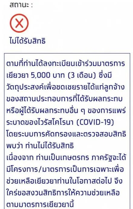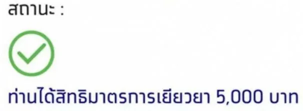 สถานะท่านได้รับสิทธิมาตรการ 5,000 บาท ความหมาย ได้รับสิทธิ์ดังกล่าวโดยเงินจะโอนเข้าบัญชีตามที่ได้ลงทะเบียนไว้