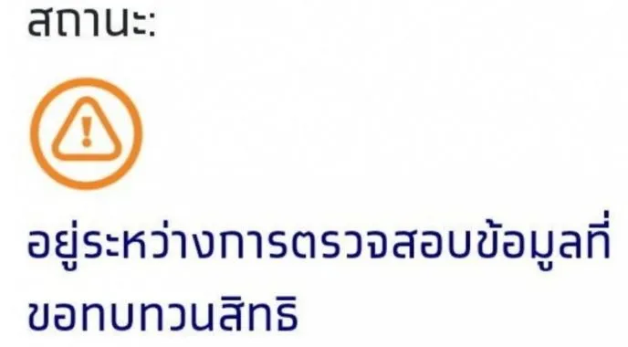 สถานะ อยู่ระหว่างการตรวจสอบข้อมูลที่ขอทบทวนสิทธิ ความหมาย ระบบได้รับการขอยื่นทบทวนสิทธิ์จากคนที่ตกเกณฑ์และไม่เห็นด้วยกับการคัดกรองแล้ว หลังจากนี้จะมีเจ้าหน้าที่ติดต่อกลับไปเพื่อตรวจสอบกรุณาเตรียมหลักฐานการประกอบอาชีพให้พร้อม