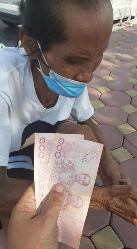 ลุงรับเงินและขอบคุณเรา และลุงร้องไห้ด้วย เราเห็นแล้วน้ำตาไหลเลย ถามลุงว่าบ้านลุงอยู่ไหน ลุงจะกลับยังไง ลุงบอกว่า ลุงยืมเงินเขามา 20 บาท เสียเงินค่าสองแถวไปแล้ว 10 บาท เหลือเงินอีก 10 บาทก็จะขึ้นสองแถวกลับ