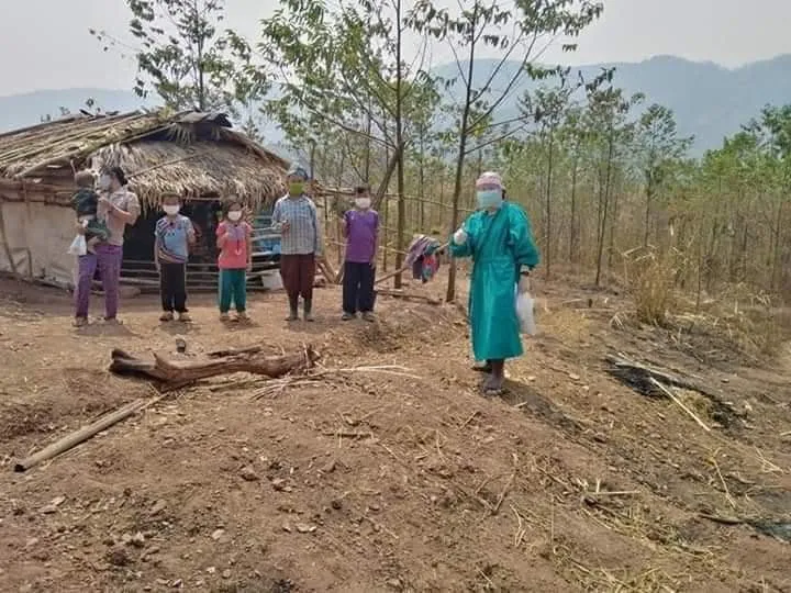 เมื่อถึงกระต๊อบ เห็นเด็กๆ อายุไล่เลี่ยกันราวๆ 4-7 ปี จำนวน 4 คน แต่ละคนสวมเสื้อผ้าเก่าๆ เนื้อตัวมอมแมม ยิ้มกว้างๆ มาพร้อมกับผู้หญิงมีอายุ 2 คน คงจะเป็นยายและแม่ของเด็กๆ ทุกคนสวมหน้ากากผ้า ออกมาต้อนรับ ทุกคนเหมือนจะดีใจมาก ที่มีหมออนามัยมาเยี่ยมถึงไร่ ที่ขอบตาข้าพเจ้า..มีน้ำเอ่อล้นออกมาโดยไม่ทันรู้ตัว รู้สึกสงสารเด็กๆ ที่ต้องทนอยู่ในสภาพอากาศที่ร้อนระอุแบบนี้ จนครบ 14 วัน