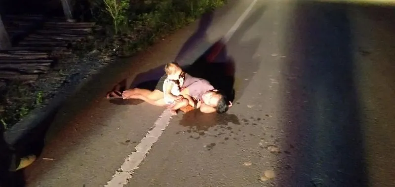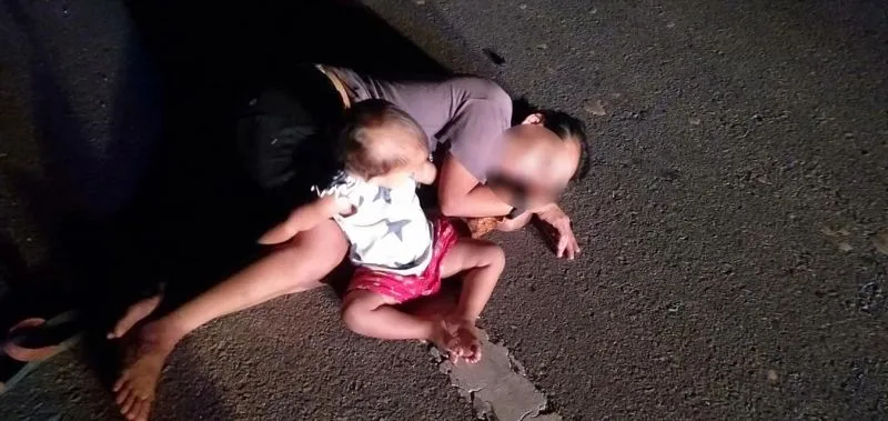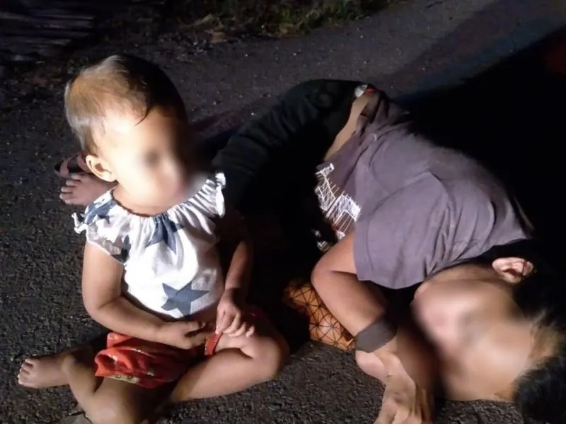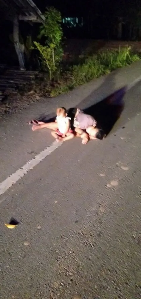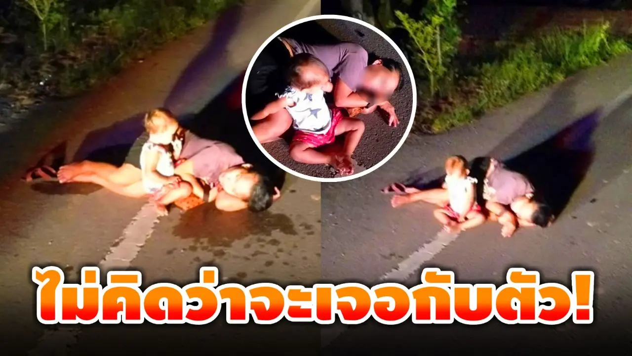 หนุ่มขับรถอยู่ดีๆ ก็แทบจะช็อก เจอหญิงนอนอยู่ข้างทาง ลูกคลานไปมาอยู่บนถนน