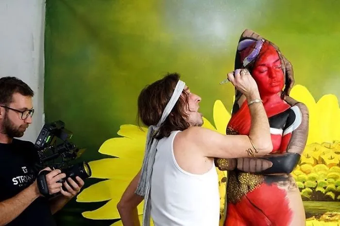 นึกว่า ดาวินชี กลับชาติมาเกิด ศิลปินดัง โจแฮนส์ สโตทเตอร์ ที่กำลังเป็นที่พูดถึงกับผลงาน การประยุคศาสตร์การพรางตัวมาใช้กับงานศิลปะได้อย่างน่าทึ่ง มีภาพหนึ่งที่เขาได้เผยเบื้องหลังinstagram ส่วนตัว เห็นแล้วก็อดคิดถึงหนังอย่าง hunger games ไม่ได้ ตอนฉากตัวเอกพรางหนีคนล่า