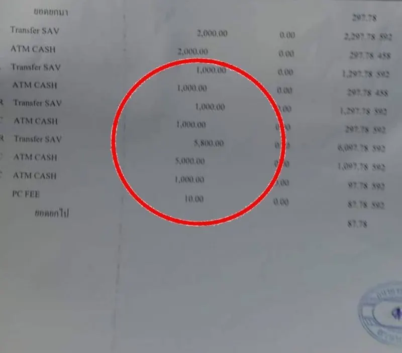 ซึ่งจากเอกสารสเตทเมนท์ที่ทางผู้เสียหายไปติดต่อขอจากทางธนาคารมายื่น พบว่ามีการโอนเงินเข้ามาในบัญชีจำนวน 5,800 บาท ในวันที่ 17 เม.ย. และมีการถอนเงินออก 2 ครั้ง ครั้งแรก 5,000 บาท ครั้งที่ 2 จำนวน 1,000 จริง แต่ไม่รู้ว่าใครเป็นคนถอน เนื่องจากเป็นการถอนผ่านบัตร เอทีเอ็ม ดังนั้นก็ต้องรอภาพจากกล้องวงจรปิดเป็นหลักฐานยืนยัน