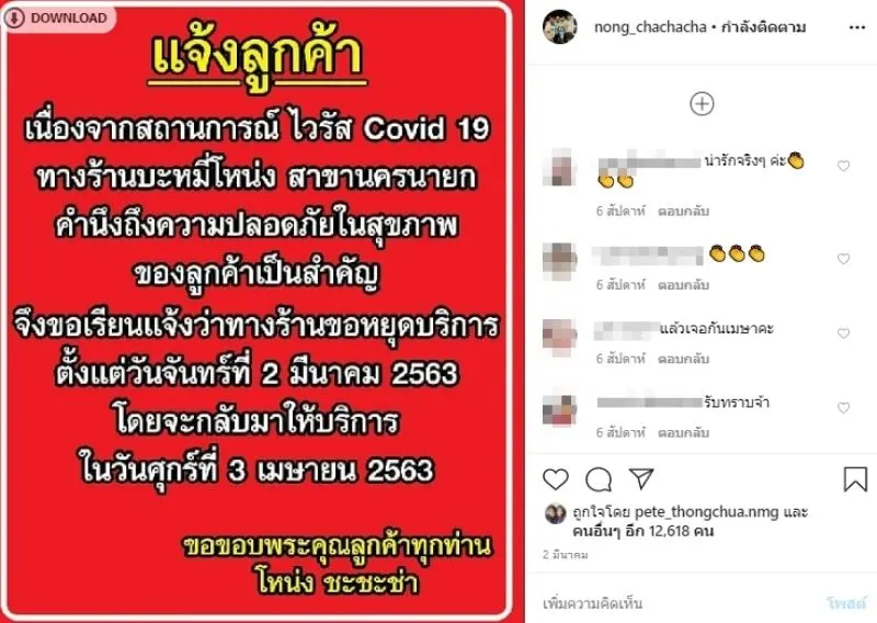 จากกรณีที่กำลังเป็นประเด็นร้อนในขณะนี้เลยก็ว่าได้ หลังตลกชื่อดังอย่าง โหน่ง ชะชะช่า หลังเจอสถานการณ์ covid-19 ทำหลายคนว่างงาน และถูกพักงานไปก่อน เช่นเดียวกันกับโหน่ง ชะชะช่า และที่หลายคนทราบกันดีว่า โหน่ง ชะชะช่า นั้นได้มีธุรกิจเป็นของตัวเองอย่าง ร้านบะหมี่โหน่ง ที่เปิดอยู่ที่ จ.นครนายก ซึ่งต้องบอกเลยว่าขายดีสุดๆ แต่จากเหตุการณ์covid-19 ทำให้ โหน่ง ชะชะช่า ต้องประกาศปิดร้านไปตั้งแต่วันที่ 2 มีนาคม จนถึงปัจจุบัน ซึ่งงานนี้ก็ทำให้ขาดรายได้ไปเยอะมากๆ