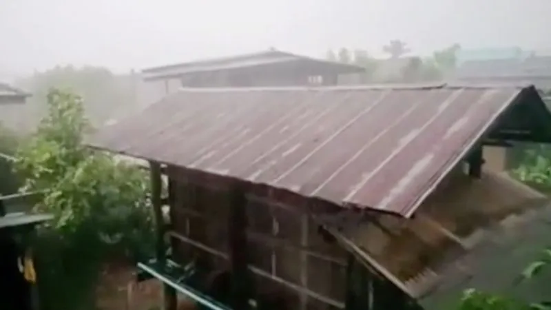 พายุฤดูร้อนพัดถล่ม หลายหมู่บ้าน ทำไฟดับ บ้านเรือนพังเสียหายระนาว
