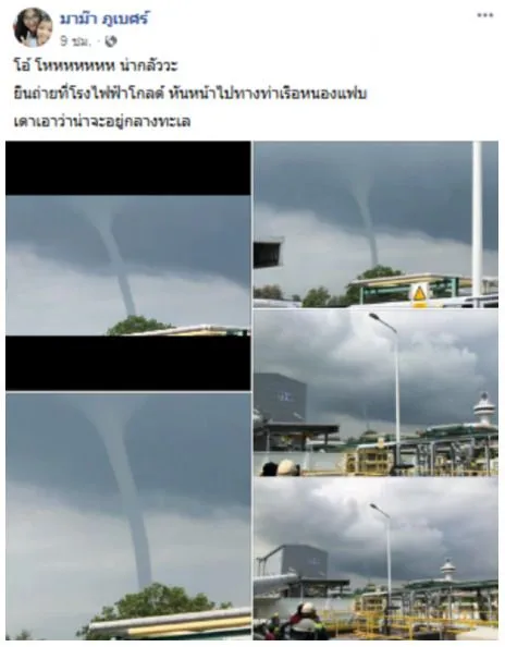ล่าสุด มีผู้ใช้เฟสบุ๊กชื่อ มาม๊า ภูเบศร์ ได้โพสต์คลิป พายุงวงช้าง โดยเจ้าตัวบอกต้องยืนถ่ายอยู่ที่โรงไฟฟ้าโกลด์ หันหน้าไปทางท่าเรือหนองแฟบ ตำบลมาบตาพุด จังหวัดระยอง ซึ่งก็ได้มีผู้เข้าชมจำนวนมาก โดยเจ้าตัวได้โพสต์คลิปและข้อความว่า โอ้ โหน่ากลัววะ ยืนถ่ายที่โรงไฟฟ้าโกลด์ หันหน้าไปทางท่าเรือหนองแฟบ เดาเอาว่าน่าจะอยู่กลางทะเล