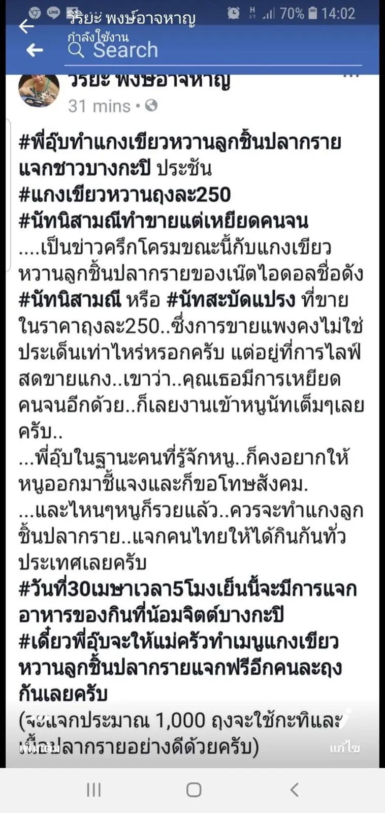 แต่นัทออกมาขายแกงเขียวหวาน250บาทแถมดูถูกคนจนฉวยโอกาสจากความดังแบบนี้ไม่น่ารักเลยขอให้ออกมาขอโทษสังคมก่อนที่จะบานปลายไปกว่านี้