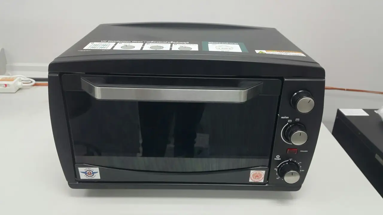 การพัฒนาตู้อบฆ่าเชื้อด้วยยูวี นวัตกรรมใหม่เพื่อการกำจัดเชื้อ ลดการระบาด แก้ไขปัญหาการขาดแคลนหน้ากากอนามัยในโรงพยาบาล ตู้อบฆ่าเชื่อประกอบด้วยหลอดกำเนิดรังสียูวี 8 วัตต์ จำนวน 2 หลอด โดยการทดสอบผลของการฉายยูวีโดยใช้ตู้อบฆ่าเชื้อด้วยยูวีต่อลักษณะของเส้นใยของหน้ากากอนามัย ไม่มีผลต่อเส้นใย ไม่มีการเปลี่ยนแปลงการทดสอบประสิทธิภาพการกรองอนุภาคขนาด 0.3 ไมโครเมตรหรือใหญ่กว่ายังพบว่า มีประสิทธิภาพเท่ากับการกรองอนุภาคของหน้ากากอนามัย N95 มีประสิทธิภาพใช้ฆ่าเชื้อแบคทีเรียแกรมลบ Escherichia coli และยังพบว่าความเข้มของรังสีที่ติดตั้งในตู้อบสามารถฆ่าเชื้อแบคทีเรียบนหน้ากาก N95 ได้ภายในระยะเวลา 1 นาที แสดงให้เห็นว่าตู้อบฆ่าเชื้อด้วยยูวีมีประสิทธิภาพในการกำจัดเชื้อโรคบนหน้ากากอนามัยในระยะเวลาอันสั้น และอาจจะนำมาประยุกต์ใช้ในการฆ่าเชื้อบนอุปกรณ์การแพทย์ที่ทำจากวัสดุต่าง ๆ ได้อีกด้วย อุปกรณ์นี้ตั้งระยะเวลาในการทำงานและมีระบบตัดการทำงานอัตโนมัติเมื่อมีการเปิดตู้เพื่อป้องกันการรั่วไหลของรังสียูวี ทั้งยังผ่านการทดสอบความปลอดภัยทางไฟฟ้าของเครื่องมือแพทย์ตามมาตรฐานสากล IEC 60601 และมีความปลอดภัยจากการใช้รังสี การประกอบเครื่องทำได้ง่ายใช้วัสดุภายในประเทศซึ่งจะช่วยลดการนำเข้าเครื่องมือดังกล่าวที่มีราคาสูงจากต่างประเทศ สำหรับตัวต้นแบบนี้ ติดต่อได้ที่ คณะวิทยาศาสตร์ประยุกต์ มหาวิทยาลัยเทคโนโลยีพระจอมเกล้าพระนครเหนือ โทรศัพท์ 0-2555-2000 ต่อ 4209 หรือ 062-193-6445 ในเวลาราชการ หรืออีเมล์ research@sci.kmutnb.ac.th
