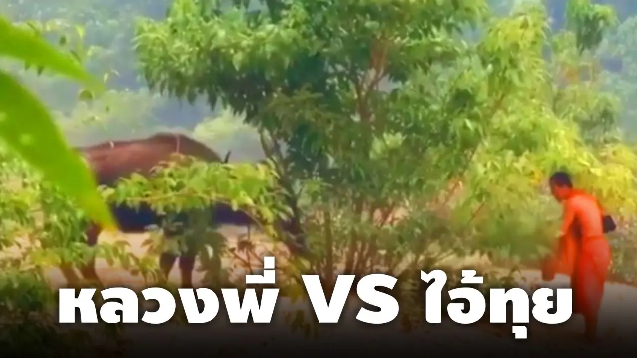 หลวงพี่วิ่งสุดชีวิต เจอควายไล่ขวิด