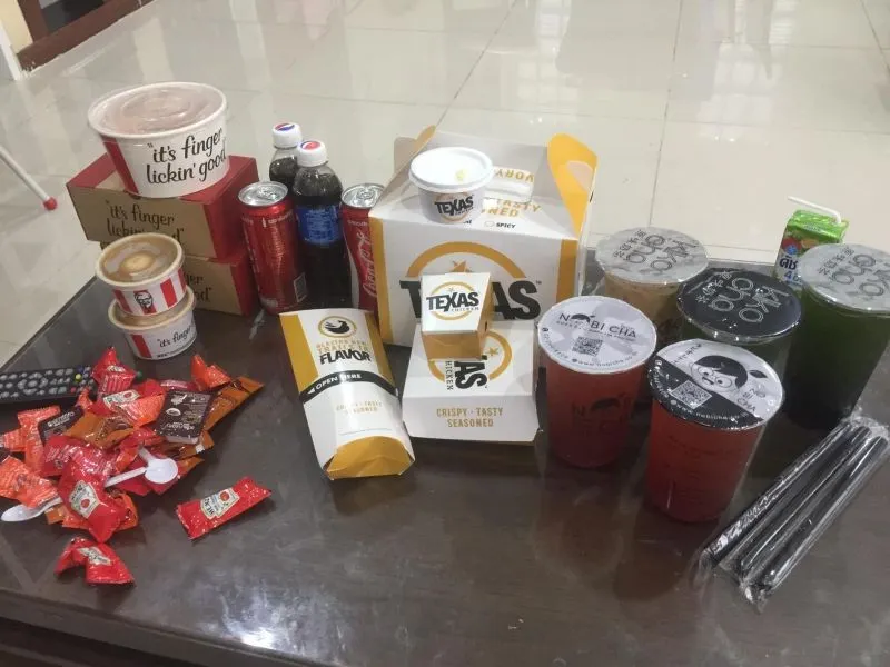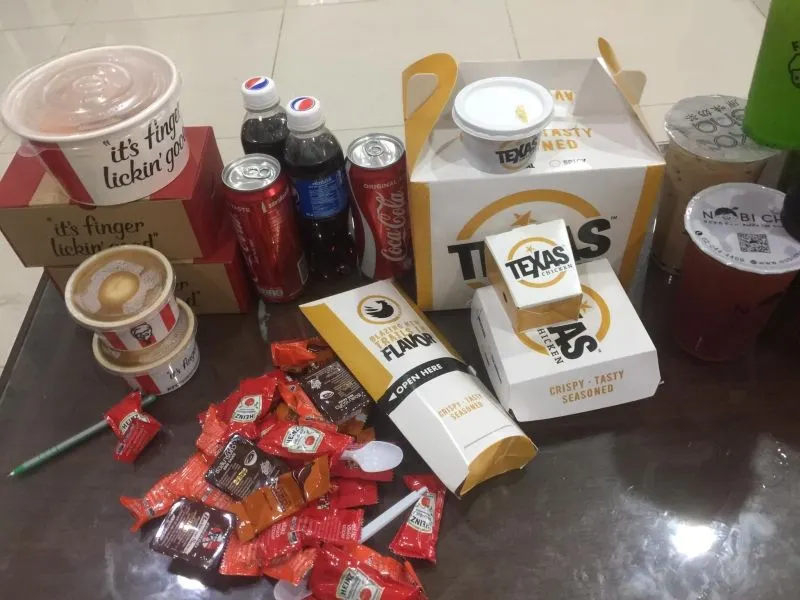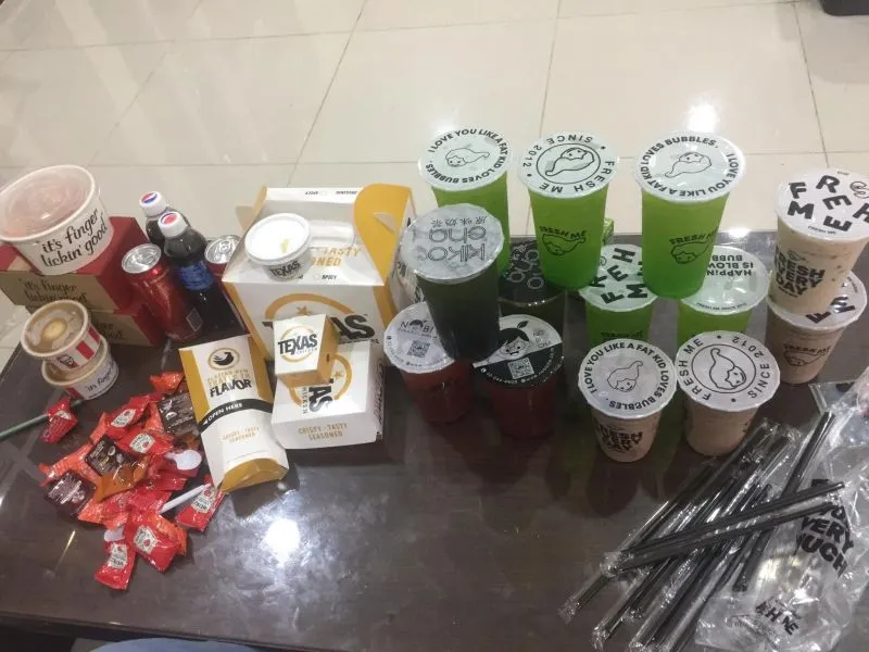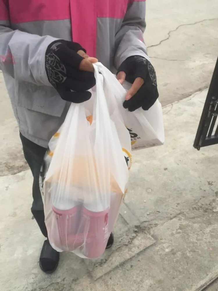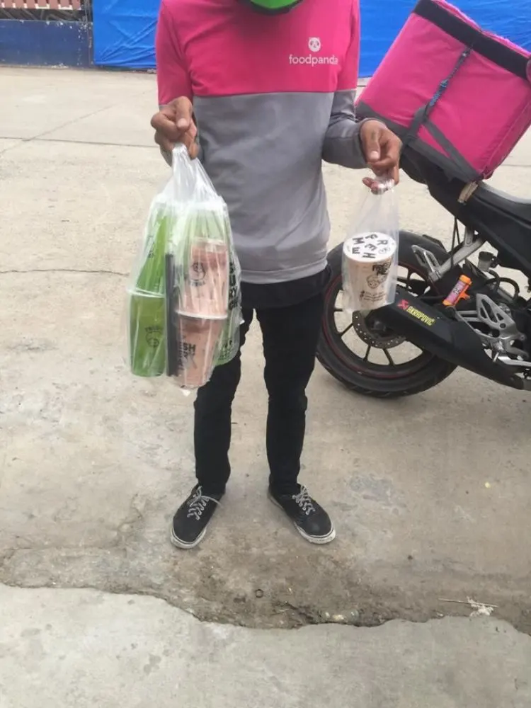 โดยผู้โพสต์ได้ระบุว่า เคยเห็นแต่ในข่าว ไม่คิดว่าจะเจอกับตัวเอง ลูกแอบกดสั่งอาหารในฟู๊ดแพนด้าเอง พี่คะมาส่งอาหารค่ะ พี่ครับมาส่งอาหารครับ น้ำ 29 แก้ว เคเอฟซี ไก่ Texas แบ่งให้ รปภ พนักงานบริษัทข้างบ้าน พนักงานฟู๊ดแพนด้า คงอิ่มน้ำกันน่าดู