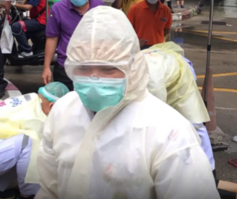 จากนั้นได้ควักกระเป๋าหยิบกระปุกยาเม็ดสีชมพูขึ้นมากรอกปากครั้งแรก พร้อมกับดื่มน้ำตาม โดยเจ้าหน้าที่รักษาความปลอดภัยรีบเข้ามาดูอาการ เบื้องต้นยังมีสติอยู่ และมีโอกาสคว้ายาขึ้นมากินอีกครั้งก่อนหมดสติไป จากนั้นเวลาประมาณ 13.00 น. เจ้าหน้าที่กู้ชีพ และรถพยาบาล จึงเดินทางมาถึงที่เกิดเหตุและรีบนำตัวส่งโรงพยาบาล