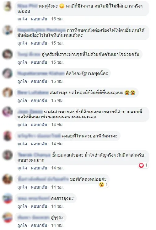 เราก็บอกลุงเอาเถอะหนูช่วย ลุงไม่รับ เดินกลับมาก็มีลูกค้าคนอื่นช่วยซื้อเพราะเห็นใจลุง มันสะเทือนใจนะเราก็เคยผ่านมาแล้วไม่มีแม้แต่บาทเดียวเราเข้าใจลุง สู้ๆนะลุง