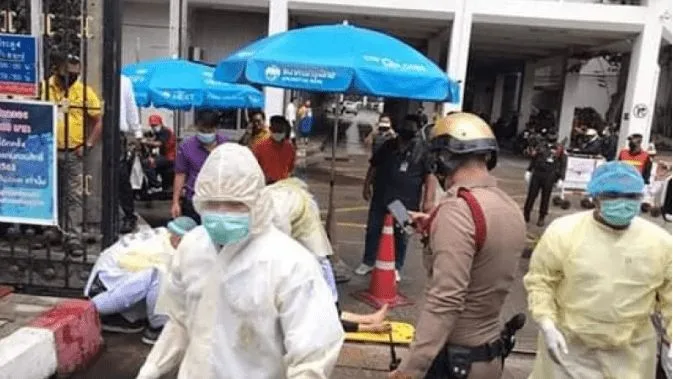 จากนั้น ได้ควักกระเป๋าหยิบกระปุกยาเม็ดสีชมพูขึ้นมา กรอกปากครั้งแรกพร้อมกับดื่มน้ำตาม ซึ่งจนท.รักษาความปลอดภัยรีบเข้ามาดูอาการ เบื้องต้น ยังมีสติอยู่และมีโอกาสคว้ายาขึ้นมากินอีกครั้งก่อนหมดสติไป จากนั้น เวลาประมาณ 13.00 น. จนท.กู้ชีพและรถพยาบาล จึงเดินทางมาถึงที่เกิดเหตุและรีบนำตัวส่งโรงพยาบาล