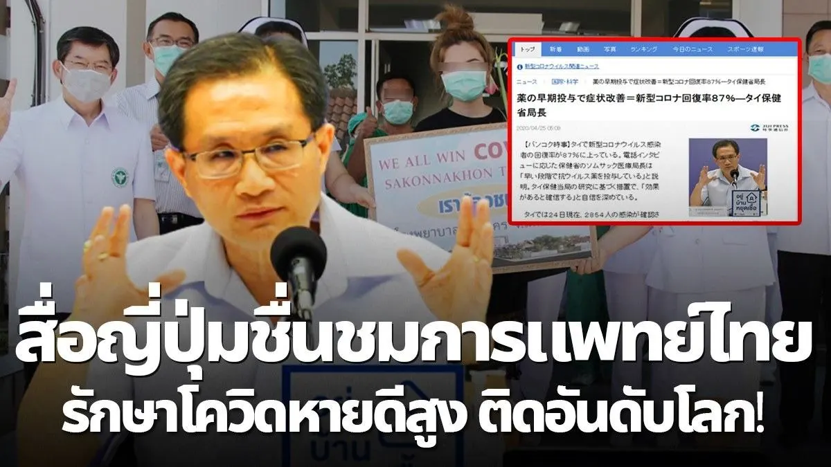 สำนักข่าวญี่ปุ่นสัมภาษณ์พิเศษอธิบดีกรมการแพทย์ไทยชื่นชมทั้งวิธีการรักษาพยาบาล วิธีการควบคุมโรคของประเทศไทยมากๆ ระบบการแพทย์พยาบาล และการสาธารณสุขของไทย