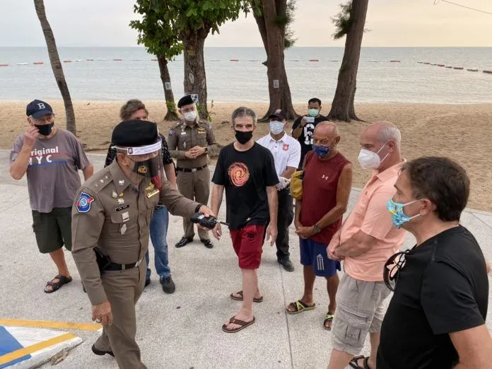 โดยเจ้าหน้าที่ได้กระจายกำลังออกประชาสัมพันธ์ตลอดแนวชายหาด เพื่อให้ประชาชนและนักท่องเที่ยวออกจากพื้นที่โดยทันที ซึ่งพบว่าบริเวณชายหาดจอมเทียนยังมีนักท่องเที่ยวทั้งชาวไทยและชาวต่างประเทศ ยังคงทำกิจกรรมเหมือนเช่นเคย บางรายออกกำลังกาย บางรายปูเสื่อนั่งอย่างสบายใจ บางกลุ่มลงเล่นน้ำกันอย่างสนุกสนาน เจ้าหน้าที่จึงได้ทำการควบคุมตัวไปยัง สภ.เมืองพัทยา เป็นนักท่องเที่ยวชาวต่างประเทศ 11 ราย คนไทยอีก 12 ราย ส่งพนักงานสอบสวนเพื่อดำเนินคดีตามความผิด ฝ่าฝืน พ.ร.ก.ฉุกเฉิน ต่อไป