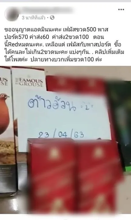 "ไลฟ์สดขายเหล้า..หนีภาษี เย้ยพรก.ฉุกเฉิน พิกัดสงขลา ไม่กลัวตำรวจก็เกรงใจผู้ว่า หรือเห็นใจบุคลากรทางการแพทย์บ้าง โดยผู้ใช้เฟซบุ๊ก candy cat เดิม(ขายบุหรี่นอก-เหล้านอกนำเข้า)และเปลี่ยนใช้ชื่อ อ้วนนนนนนน ต้าวววว (กลุ่มซื้อขาย ประมูลเหล้านอกราคาถูก)(กลุ่มบุหรี่ ยาเส้น)