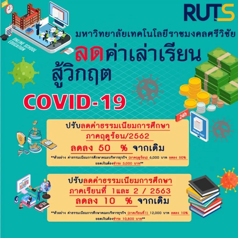RUTS ลดค่าเล่าเรียน สู้วิกฤต COVID-19