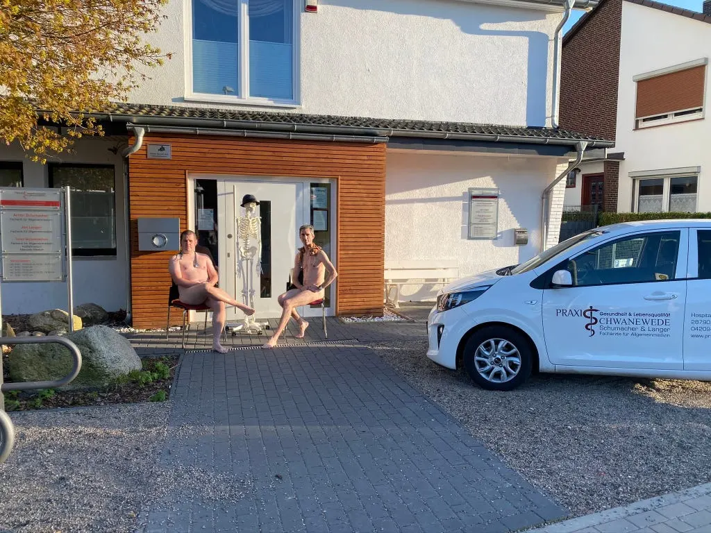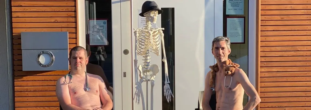 ซึ้งแพทย์รายหนึ่งที่ร่วมรณรงค์ได้เผยกับสื่อเยอรมันว่า พวกเขาได้รับแรงบันดาลใจจาก อแลง โกลอมบีเย แพทย์ชาวฝรั่งเศสที่โพสต์ภาพตนเองขณะเปลือยลงในสื่อสังคมออนไลน์ตั้งแต่เดือน มี.ค. เปรียบเทียบเสมือนว่าไร้อุปกรณ์ป้องกันที่เพียงพอของแพทย์ในฝรั่งเศสที่ต้องรับมือกับโรคติดต่อ โดยระบุว่า "ไม่ต่างอะไรจากการแก้ผ้าเเปลือยเปล่่า" ร่างกายอาจได้รับเชื้อโรค เลอะสิ่งสกปรกได้ง่ายๆ