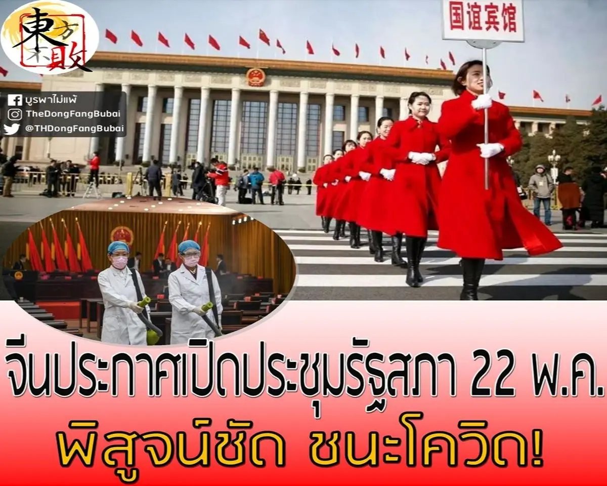 จีนประกาศกำหนดการประชุมสภาประชาชนแห่งชาติ วันที่ 22 พฤษภาคม คือ สัญญาณของชัยชนะต่อโรคร้ายที่ชัดเจนที่สุด