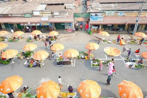 ทางภาคเอกชนก็สนับสนุนแนวคิดนี้ด้วยเช่นกัน โดยทางธนาคาร CB Bank และค่ายโทรคมนาคม mytel ก็ได้ช่วยนำร่มสีส้มจำนวนมากมาช่วยวางกันแดดกันฝนให้กับเหล่าพ่อค้าแม่ค้า กลายเป็นภาพที่สวยงามน่าชื่นชมเป็นอย่างมาก
