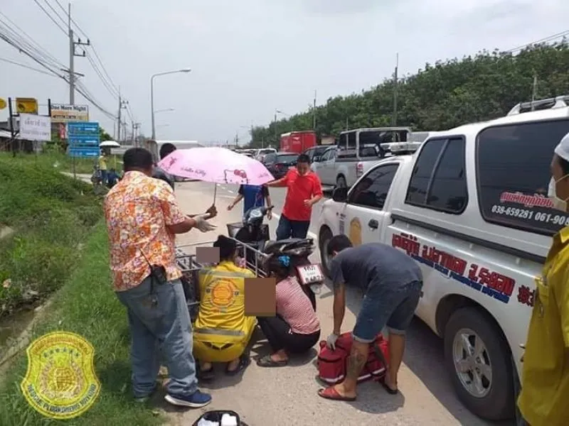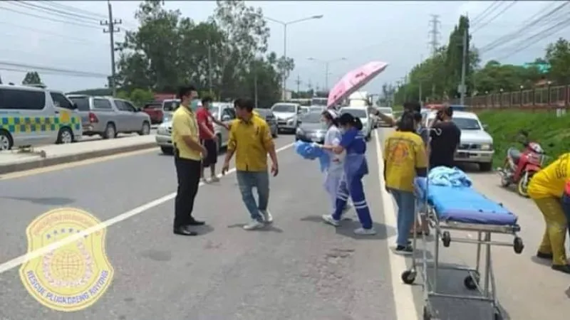หน้าโรงเรียนอรวินนอก ใกล้เคียงสี่แยกมาบเตย อาสาสมัครตรวจสอบเบื้องต้น พบหญิงคลอดบุตรบนรถจักรยานยนต์ ฮอนด้าเวฟสีดำ ติดพ่วงข้าง ทะเบียน 1 กภ 8482 ระยอง