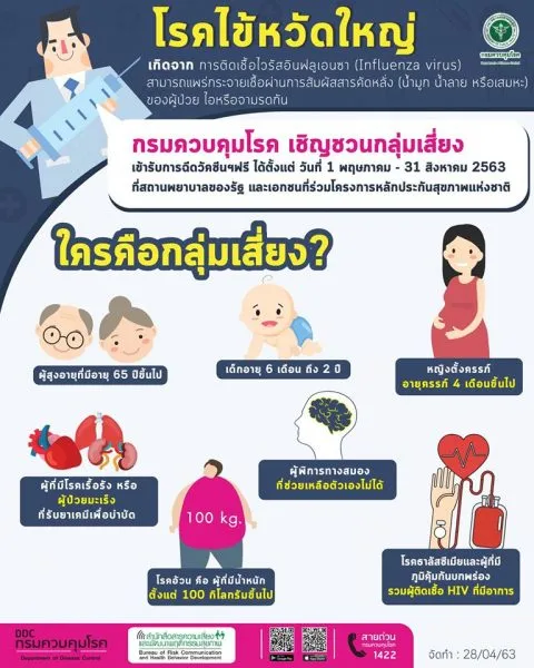 กรมควบคุมโรค ขอเชิญชวน 7 กลุ่มเสี่ยง เข้ารับบริการฉีดวัคซีนโรคไข้หวัดใหญ่ ฟรี!