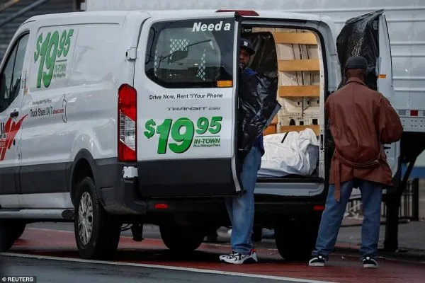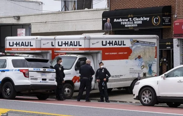 เจ้าหน้าที่ตำรวจรายงานว่า ร่างกายของผู้เสียชีวิตในยานพาหนะในบรู๊คลิน เมื่อวันพุธที่ผ่านมา ซึ่งพวกเขาตั้งใจค้นหาบ้านสถานประกอบพิธีศพแห่งหนึ่ง พวกเขาพบ 100 ศพ ที่เริ่มเน่าในรถบรรทุก U-Haul สองคัน รถตู้แช่แข็งถูกนำเข้ามาโดยมีเจ้าหน้าที่ ช่วยกันขนย้ายศพที่ห่อด้วยถุง ขึ้นรถตู้แช่แข็งเพื่อแก้ปัญหากลิ่นเหม็นรบกวนชาวบ้าน