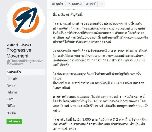 ที่มาแฟนเพจเฟซบุ๊ก คณะก้าวหน้า – Progressive Movement