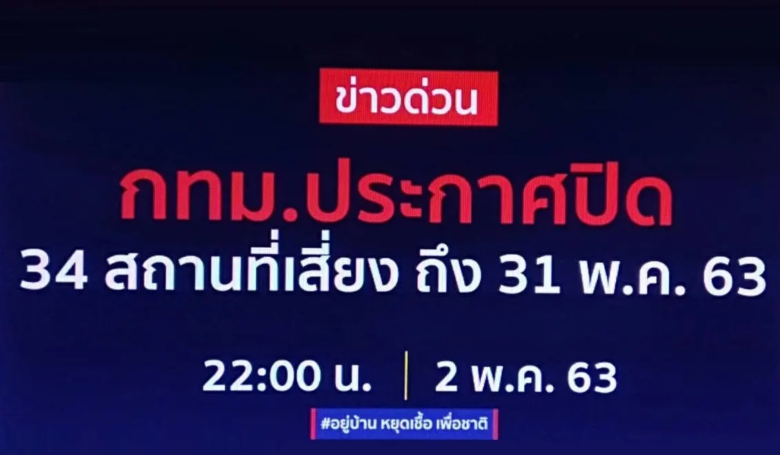 กทม.ออกประกาศฉบับที่ 8 สั่งปิดสถานที่ชั่วคราว 34 แห่ง เสี่ยงโควิด 19