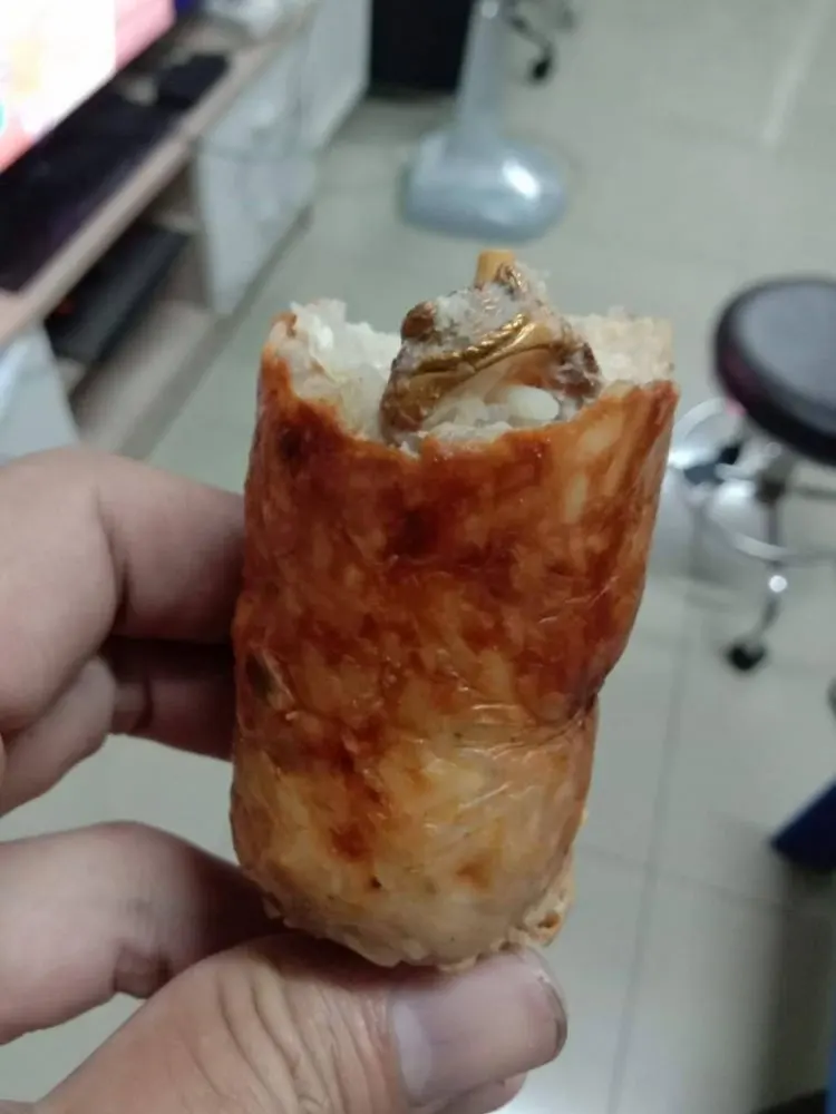มาเป็นวงเลย จะกินต่อหรือพอแค่นี้ ไม่คิดว่าจะเจออกับตัว คือใส้กรอกมีแหวนใส่มาในใส้กรอก ฟันผมแทบไม่รอด นี่ใส้กรอกคนรึป่าว มีแหวนต้องมีนิ้วรึป่าว เพื่อความบริสุทธิ์ใจผมจะยังไม่กินต่อ เผื่อมีหน่วยงานมาตรวจนะครับ ช่วยแชร์ให้หน่วยงานใดก็ได้มาตรวจร้านนี้หน่อยผมจะชี้เป้าให้ครับ ข้อมูลแจ้งว่าร้านอยู่แถวย่านแพรกษา