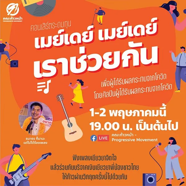 จากกรณี “คณะก้าวหน้า” ได้จัดกิจกรรมไลฟ์สดคอนเสิร์ต #MAYDAYMAYDAYเราช่วยกัน โดยศิลปินผู้ได้รับผลกระทบจากโควิด-19 เพื่อระดมทุน ระหว่างวันที่ 1-2 พฤษภาคม ที่ผ่านมา กิจกรรมดังกล่าวได้รับกระแสตอบรับที่ดีในโลกออนไลน์