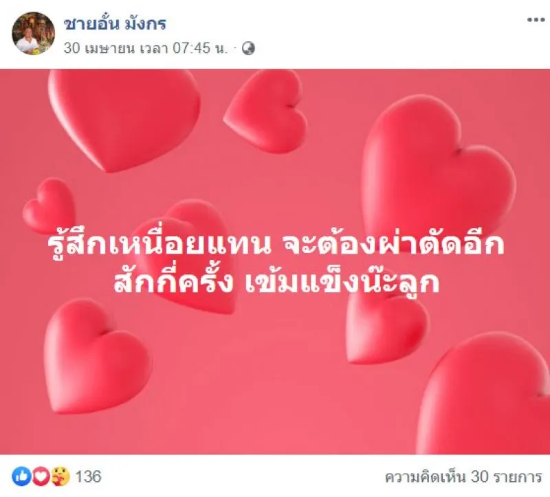 อย่างไรก็ตามทีมงาน siamnews ขอเป็นกำลังใจให้นะคะ ขอให้หายไวๆกลับมาอยู่กับครอบครัวเช่นเดิมจ้า