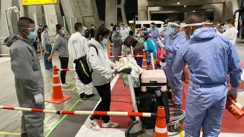 เมื่อวันที่ 3 พ.ค.63 ที่สนามบินสุวรรณภูมิ พล.อ.ปริพัฒน์ ผลาสินธุ์ รองเสนาธิการทหาร พร้อมด้วย นายกิตติพงศ์ กิตติขจร รองผู้อำนวยการท่าอากาศยานสุวรรณภูมิ (สายปฏิบัติการ 1) เจ้าหน้าที่สำนักงานปลัดกระทรวงกลาโหม กรมควบคุม และหน่วยงานที่เกี่ยวข้อง ดำเนินการรับคนไทยในต่างประเทศ ที่ได้รับผลกระทบจาก COVID 19 เดินทางกลับประเทศไทยแล้ววันนี้ 3 เที่ยวบิน โดยเที่ยวแรก เดินทางมาจากประเทศรัสเซีย เที่ยวบิน SU 272 เครื่องลงเวลา เวลา 10.30 น. มีผู้โดยสารจำนวน 70 คน ผ่านการตรวจคัดกรองพบไม่มีไข้ ส่งเข้ากักตัว 14 วัน ตามมาตรการรัฐ ที่โรงแรม Ambassador สุขุมวิท กทม.