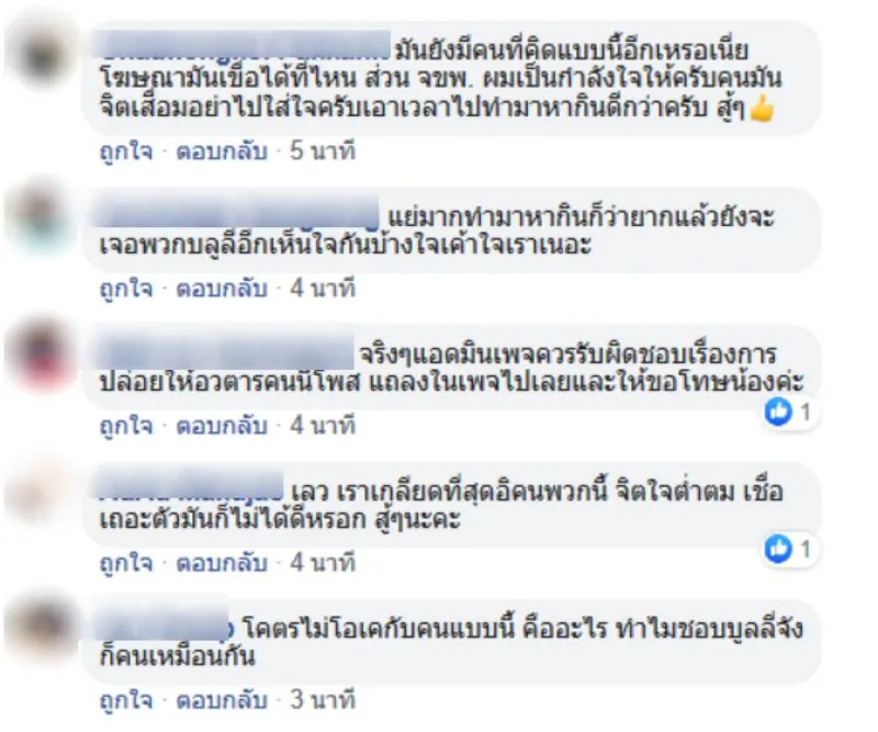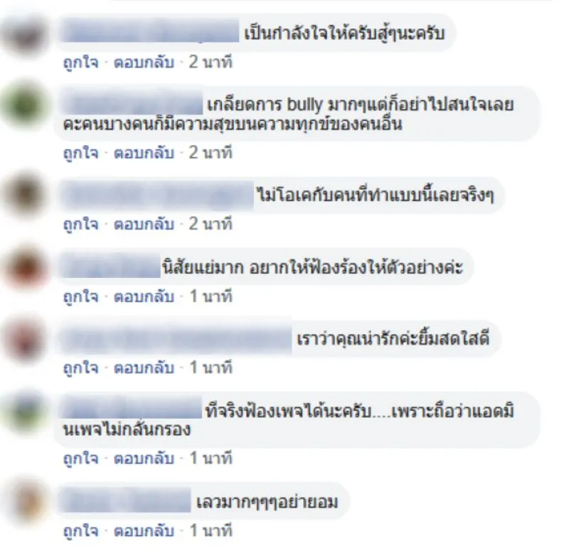โดยหลังจากที่ได้มีการโพสต์เรื่องราวออกไป ก็มีชาวโซเชียลเข้ามาให้กำลังใจเธอเป็นจำนวนมาก ซึ่งส่วนมากต่างมองว่า การกระทำของผู้ที่นำภาพของเธอไปโพสต์นั้น เป็นการกระทำที่ไม่ถูกต้อง เพราะเราทุกคนต่างก็มีความรู้สึก การถูก บูลลี่ นั้น อาจจะเป็นเรื่องสนุกขำขันของบางคน แต่กับคนที่โดน บูลลี่ นั้น ไม่ใช่เรื่องตลกเลย