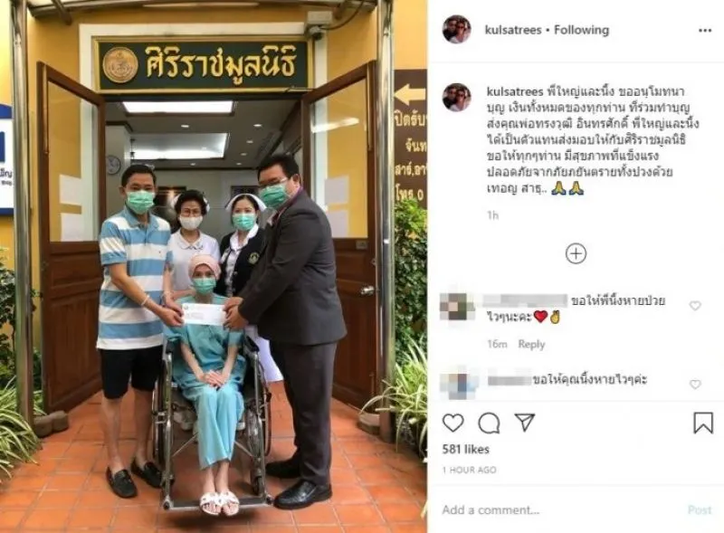 ล่าสุด สาวนิ้ง โพสต์ภาพ ตัวเองครั้งแรก หลังเข้ารักษาตัวที่โรงพยาบาลล่าสุด ที่เจ้าตัวโพสต์เมื่อต้นเดือน เม.ย. ที่ผ่านมา สายระโยงระยาง ขณะนั่งวีลแชร์ พร้อมนำเงินมอบให้ศิริราชมูลนิธิ แคปชั่นว่า