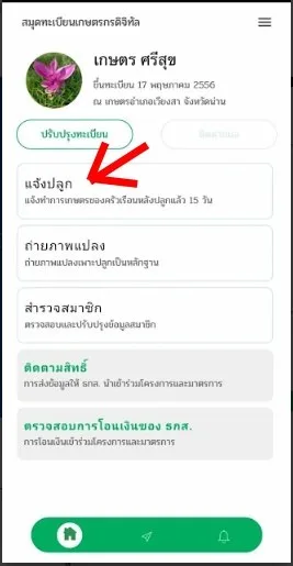 2) กดเลือก "แจ้งปลูก"